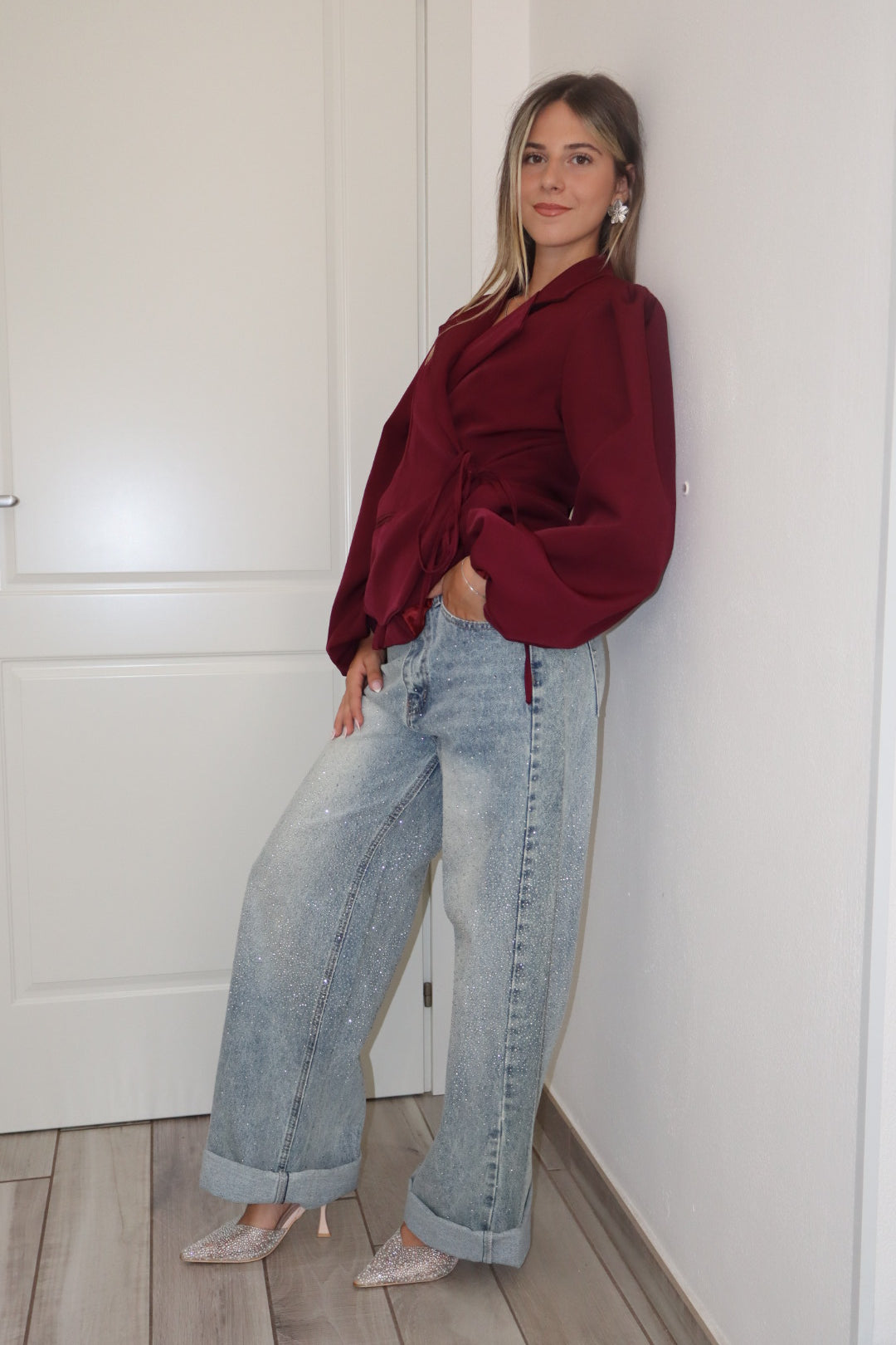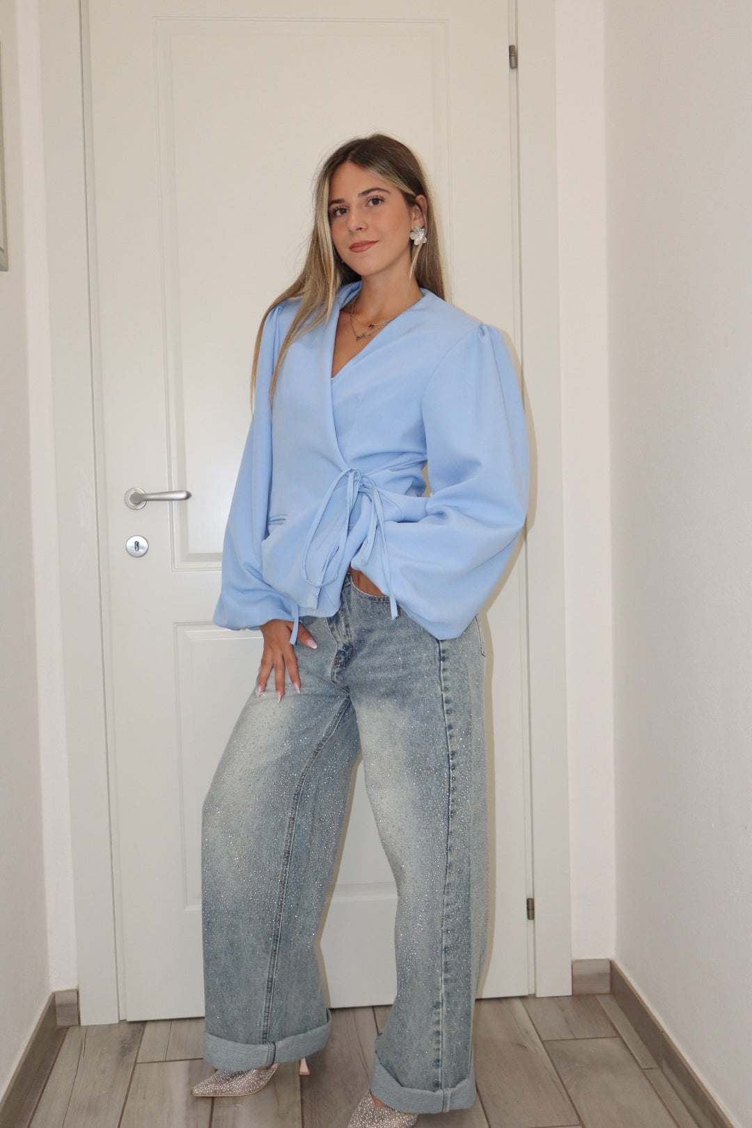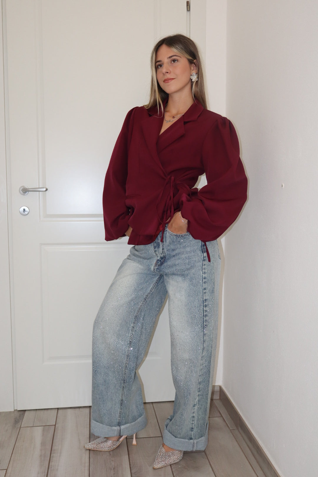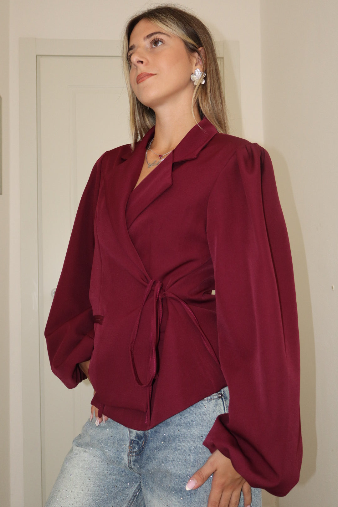 Blazer a portafoglio con laccetto laterale sinistro,foderato, veste da S a L