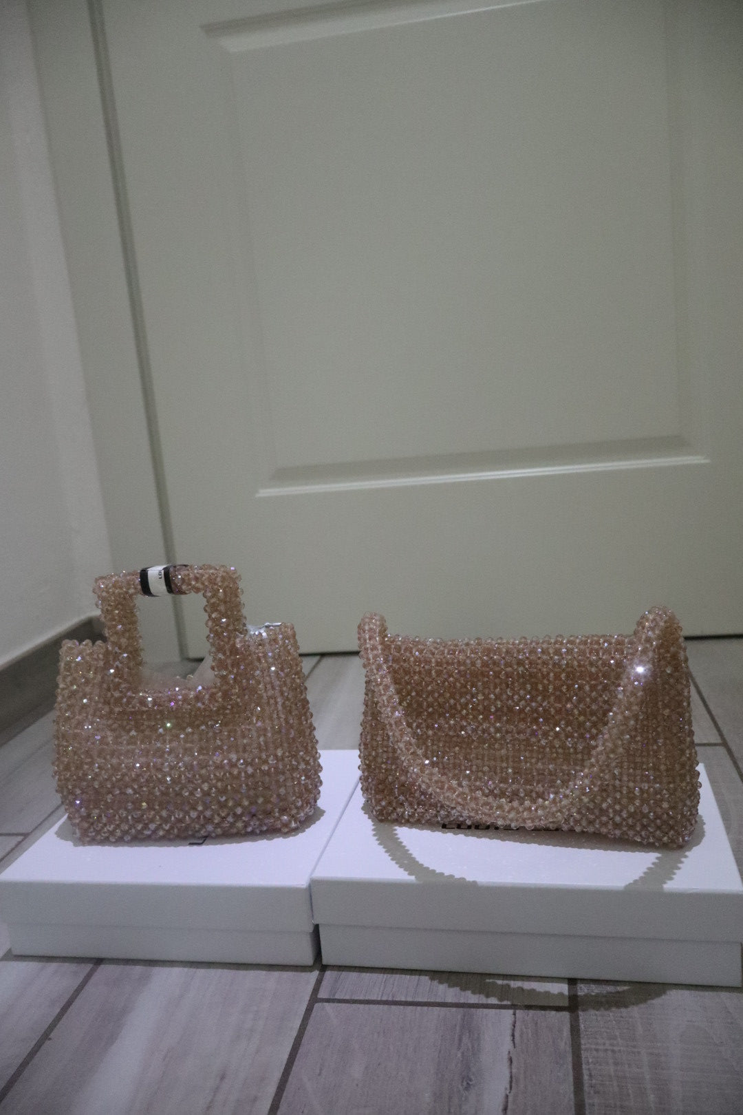 Borsa fatta completamente a mano con perline con oro rosa,è leggermente pesante
