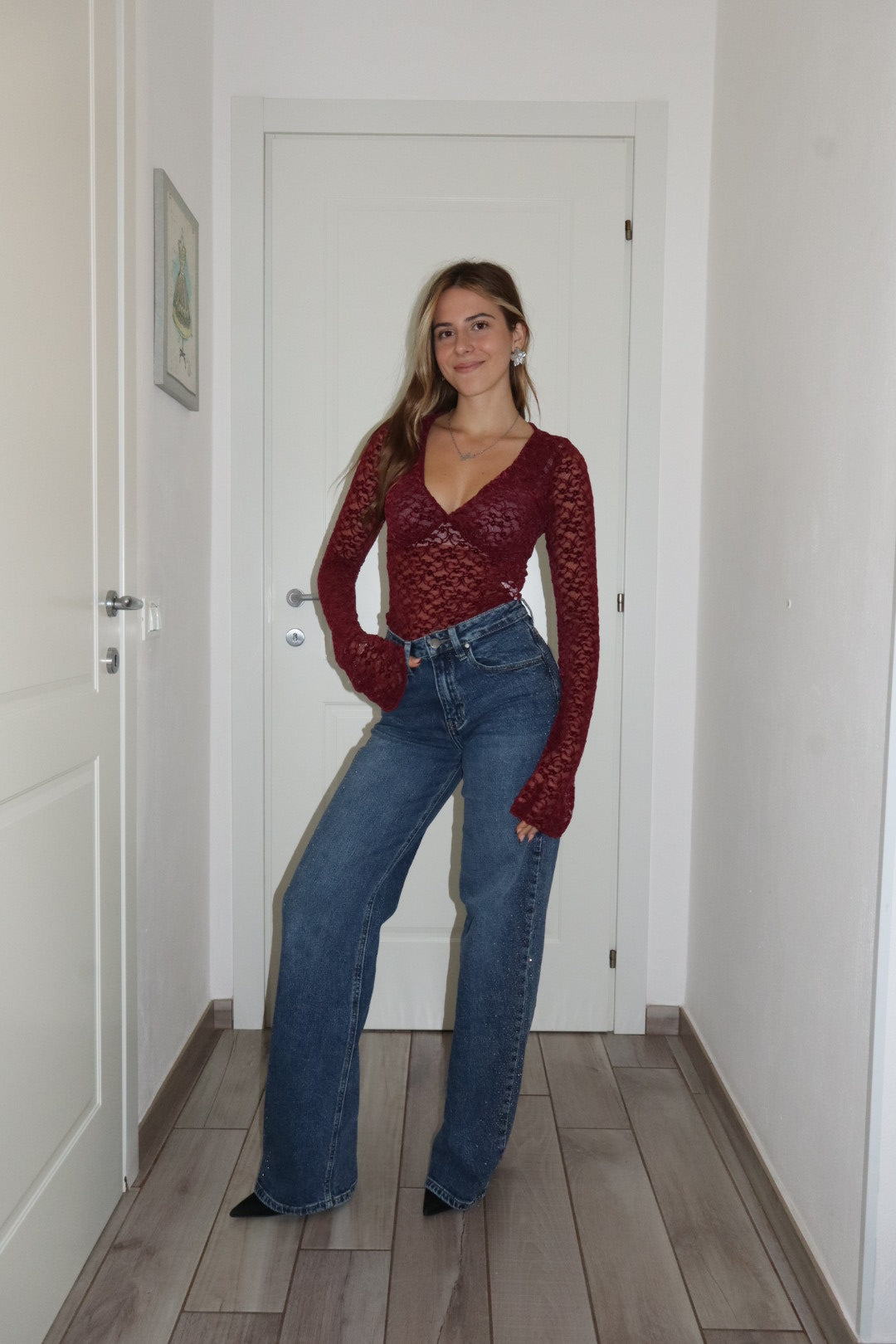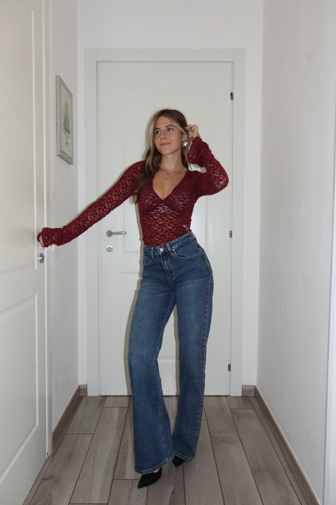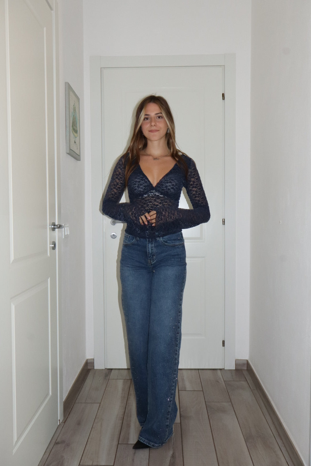 Magliettina in pizzo velluto