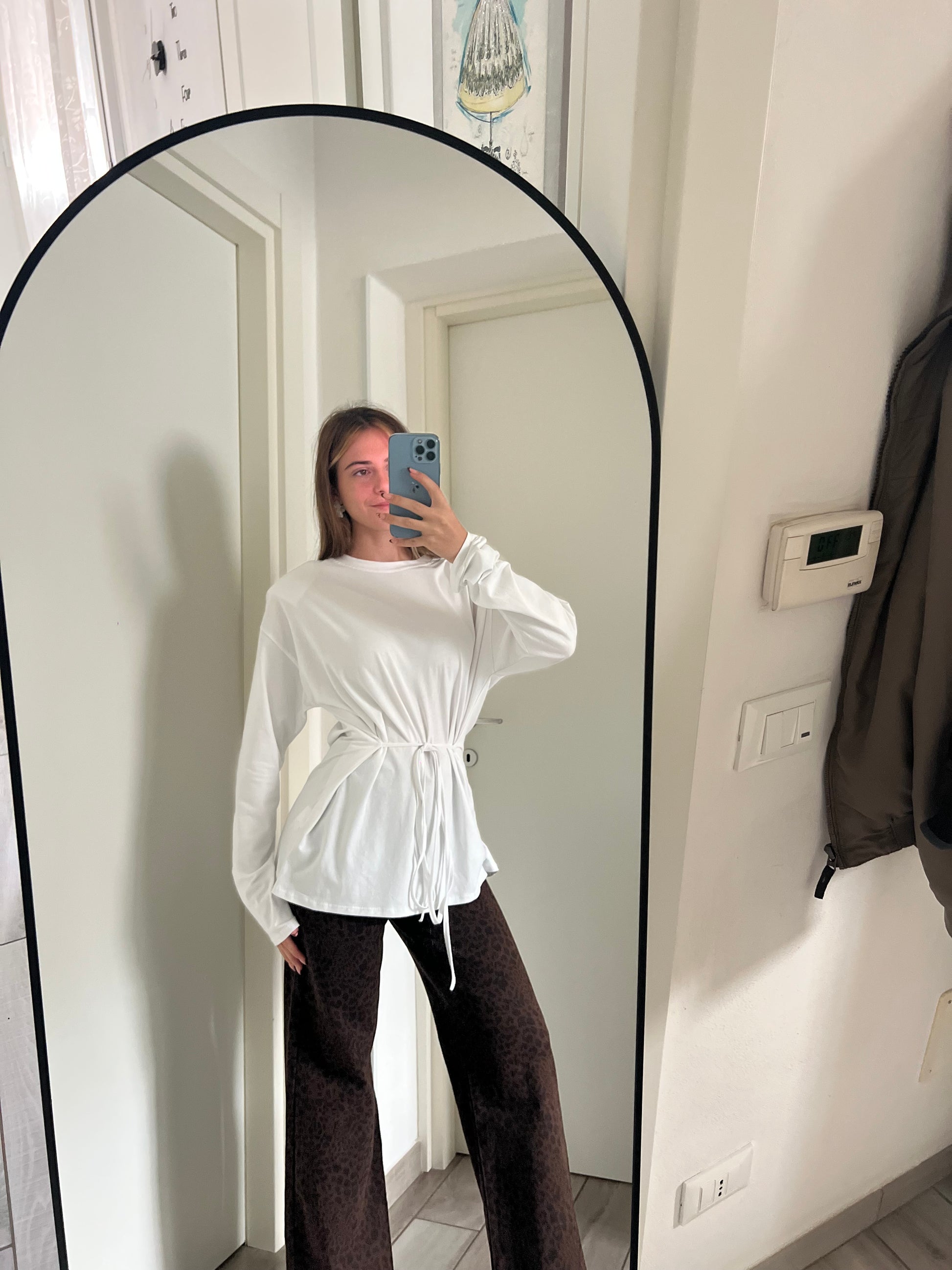 T-shirt in cotone con laccio per valorizzare punto vita in cui si può legare davanti o dietro. Veste da xs a L
