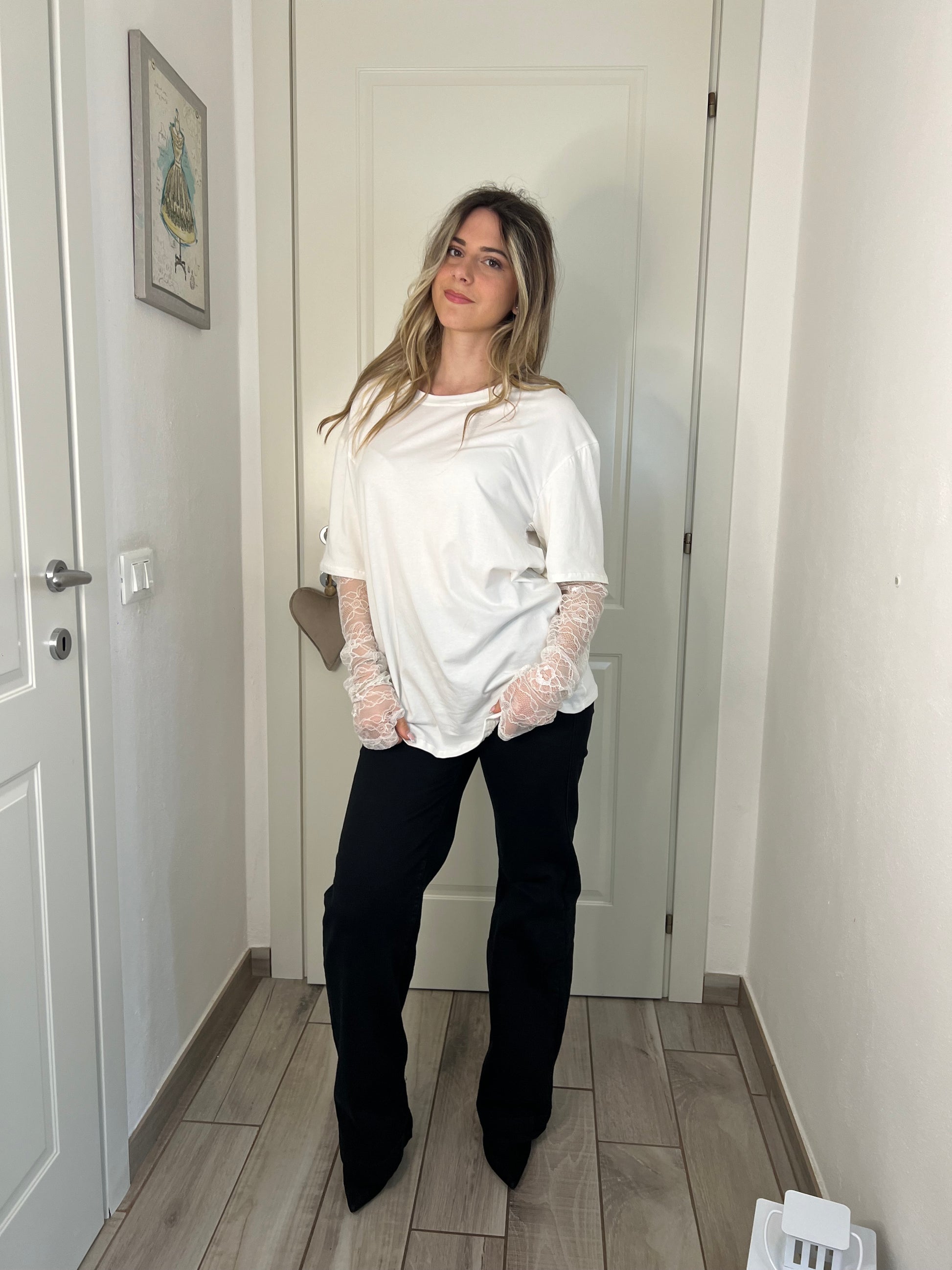 T-shirt maniche pizzo white