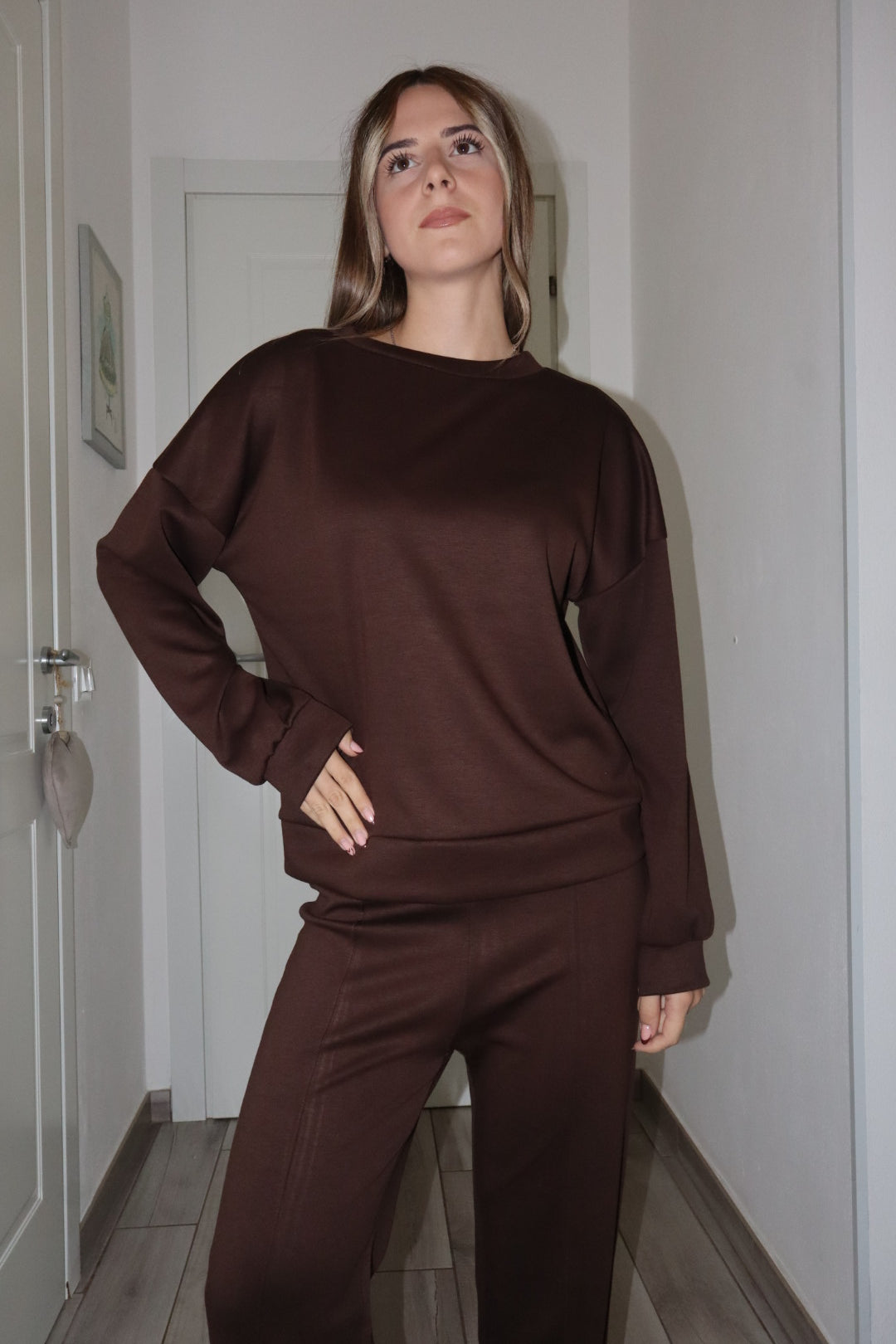 Tuta con felpa e pantalone elasticizzato,garzata. Veste da xs a L. Modella alta 1,66cm